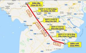 Dự án cao tốc Châu Đốc- Cần Thơ- Sóc Trăng có tổng chiều dài 188,2 km, đi qua địa phận 4 tỉnh, thành phố, quy mô đầu tư phân kỳ 4 làn xe, sơ bộ tổng mức đầu tư 44.691 tỷ đồng.